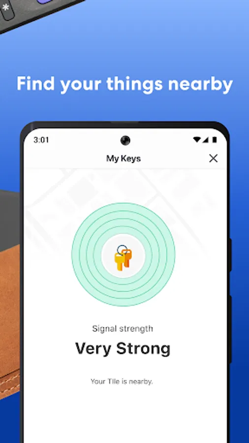FIND NEARBY-- Use the Tile app to ring your Tile when it’s within Bluetooth range or ask your Smart Home device to find it for you.