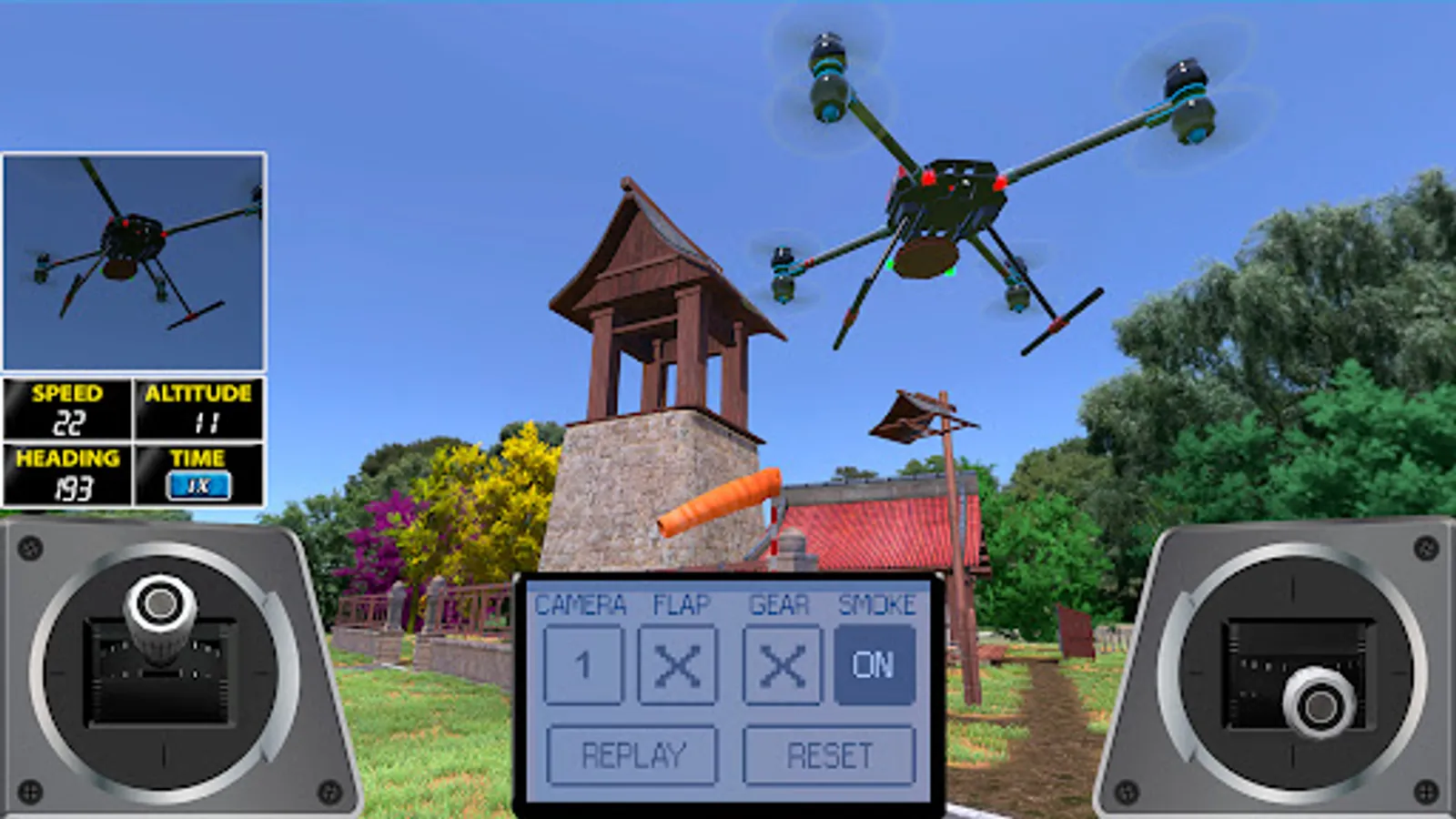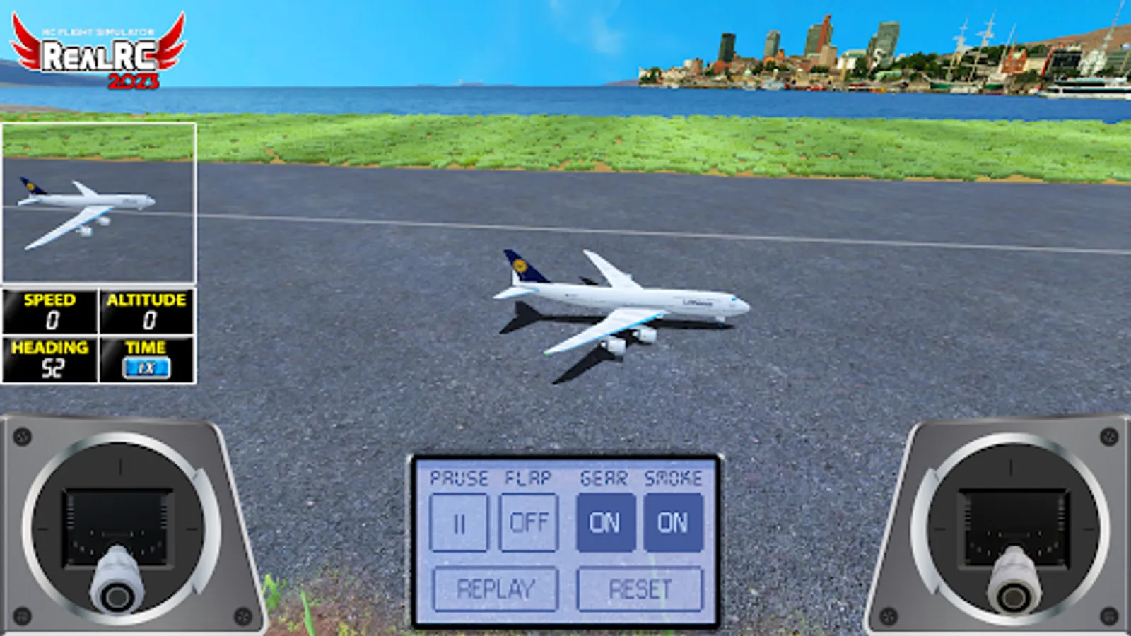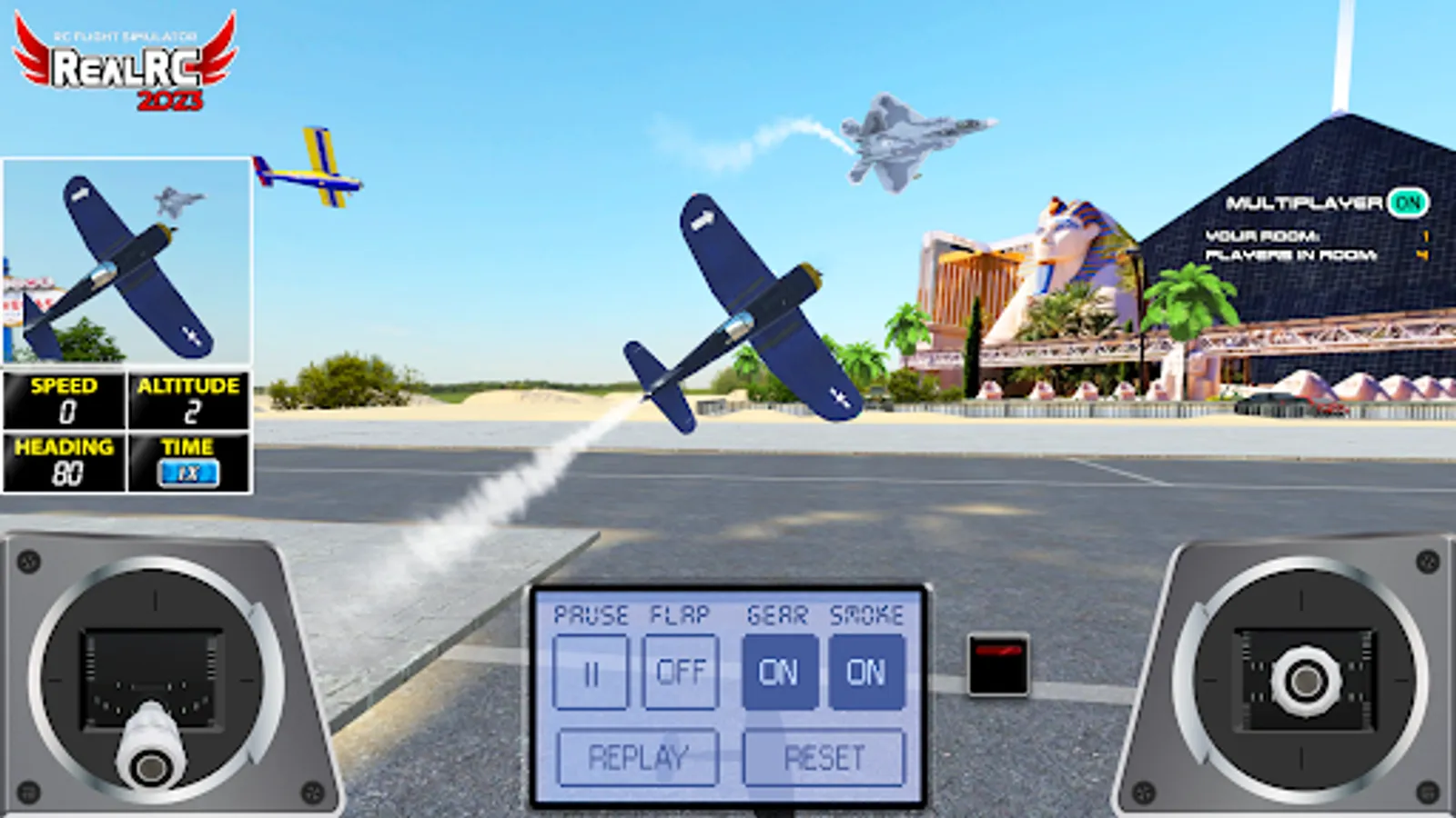 We included the virtual RC Controller on the screen fully configurable and a physics algorithm very close to what you can do with your real RC plane.