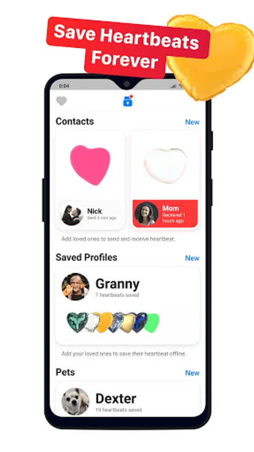 – Choose a contact or a saved profile of loved one or pet to upload their heartbeat to HB Ring