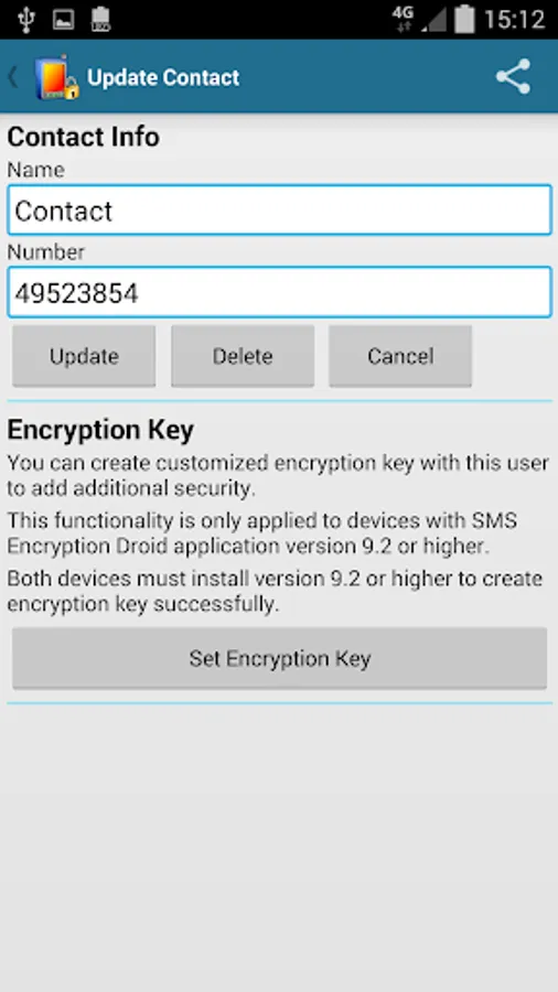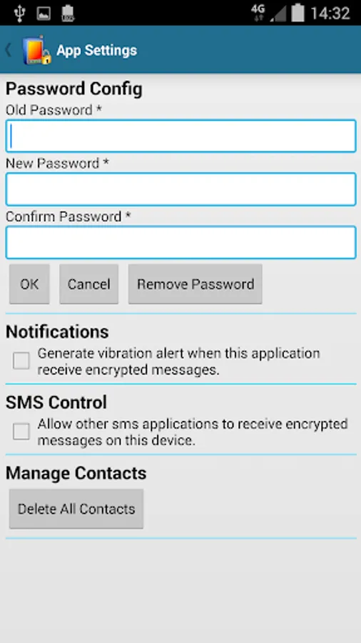 Encryption key settings: You can create secret encryption key for each of your contacts. When one user sends encryption key to other user, it will prompt message about receiving encryption key in receiving phone. This key will be shared between these two users.