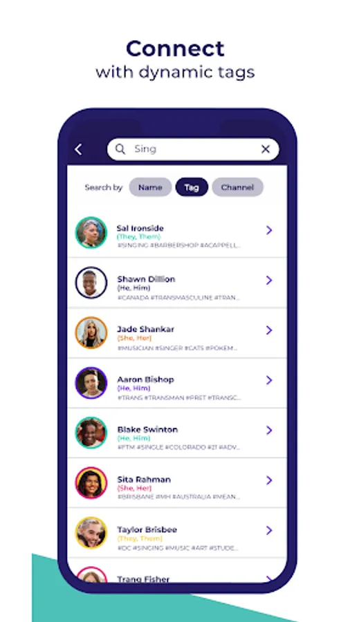 • Profile tags to help search for people with similar interests