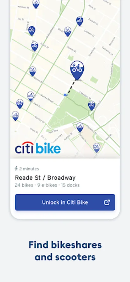 - See ALL nearby bikeshares, scooters, and carshares