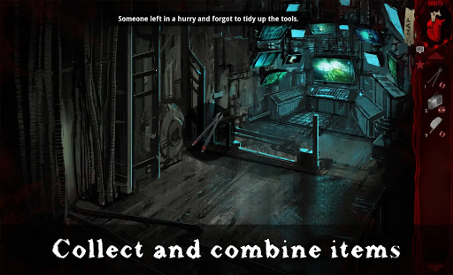 • After picking up an item you can drag it on another item to combine it, or drag it on the location in order to affect it (destroy something, put item somewhere etc.)