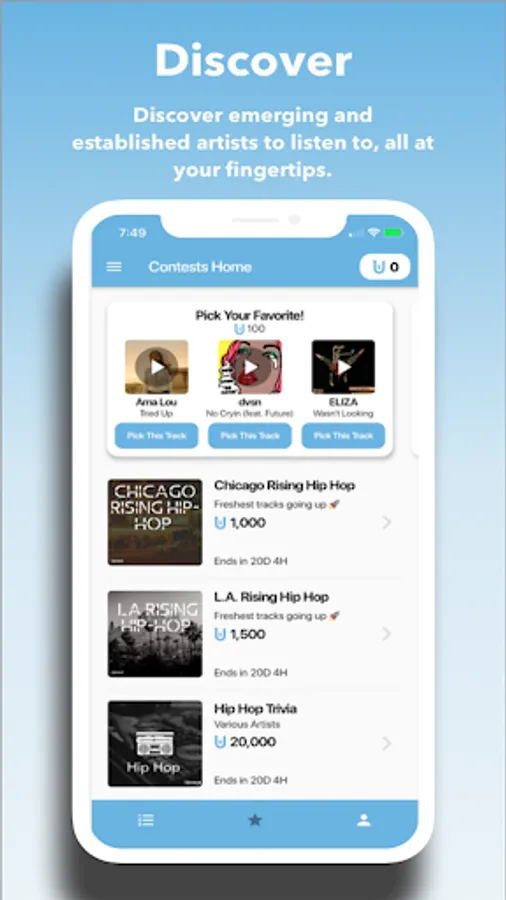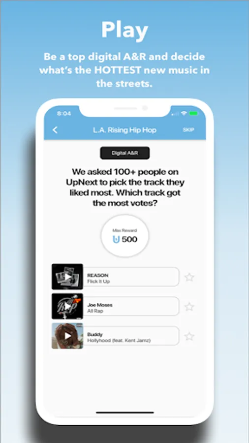 Start playing UpNext today! - As seen in Forbes and Billboard - The game of music discovery where fans find new music while proving their status as a tastemaker.