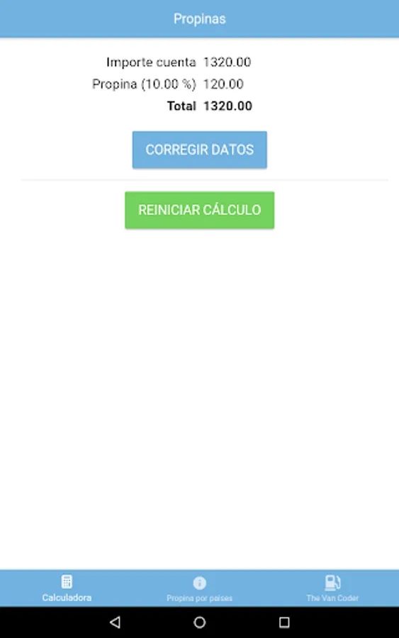 With this application in a matter of seconds you can know how much you have to stop tipping. You can also divide the total per person.