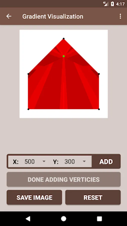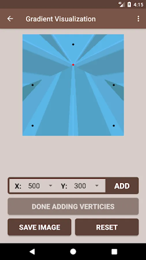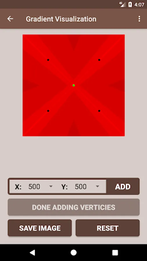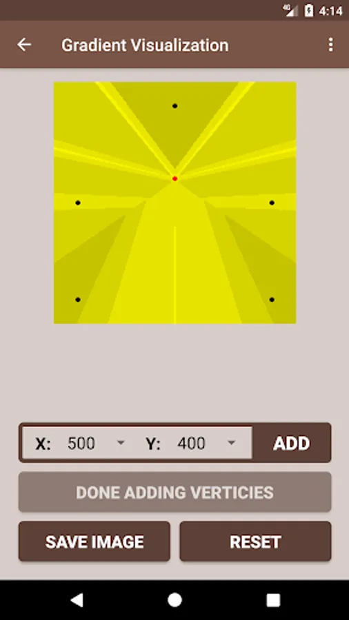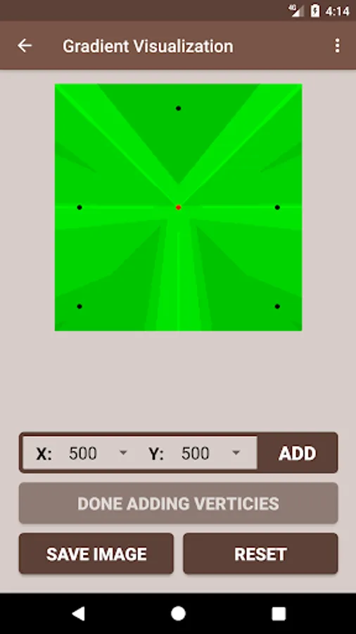 Use the more creative gradient mode to interact with different colors and visualize all of the different possibilities when a set of vertices is given by you!