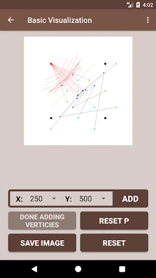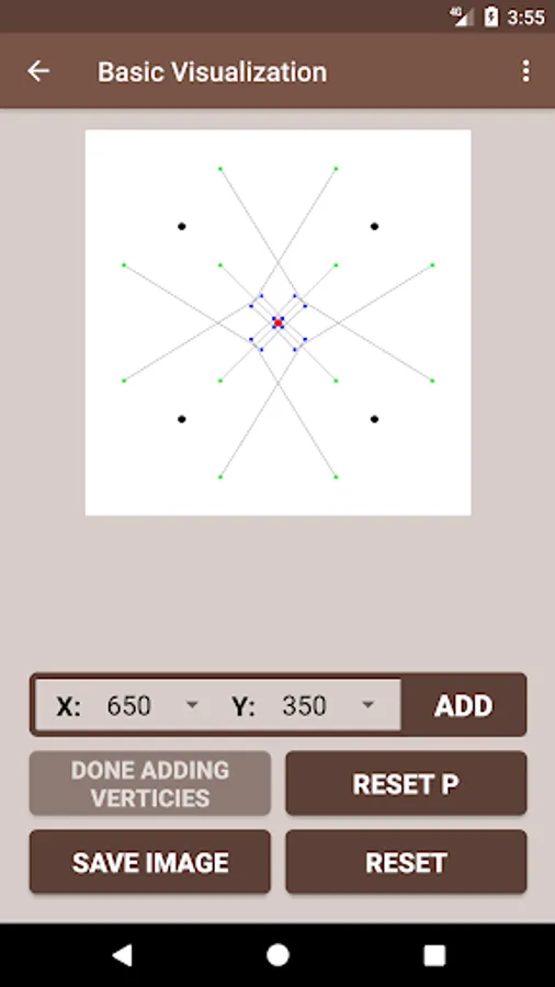 The app visualizes solving 2D cases of a significant problem in Computer Science: Is a point ‘inside’ the convex hull of a given set of points? The app thus serves as a medium for education and for algorithmic art.
