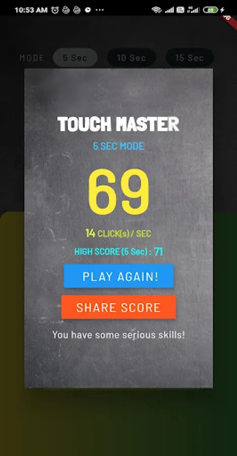 Don't forget to share your scorecard to your friends and challenge them with your touch skills.