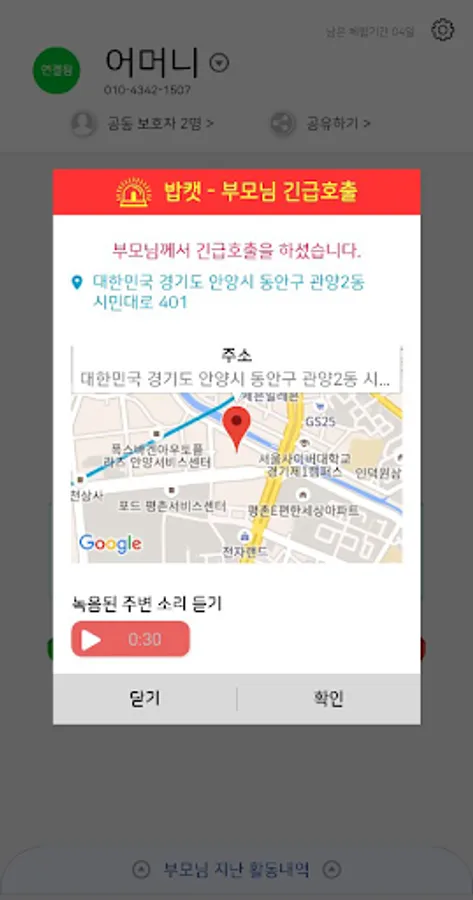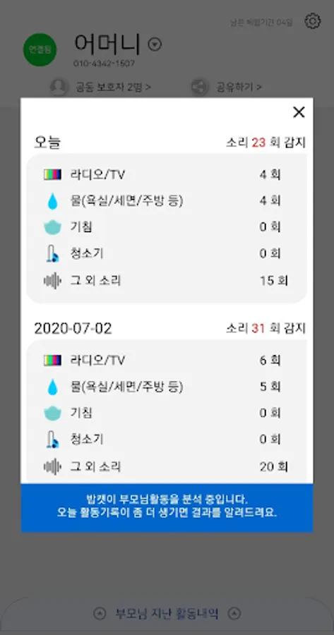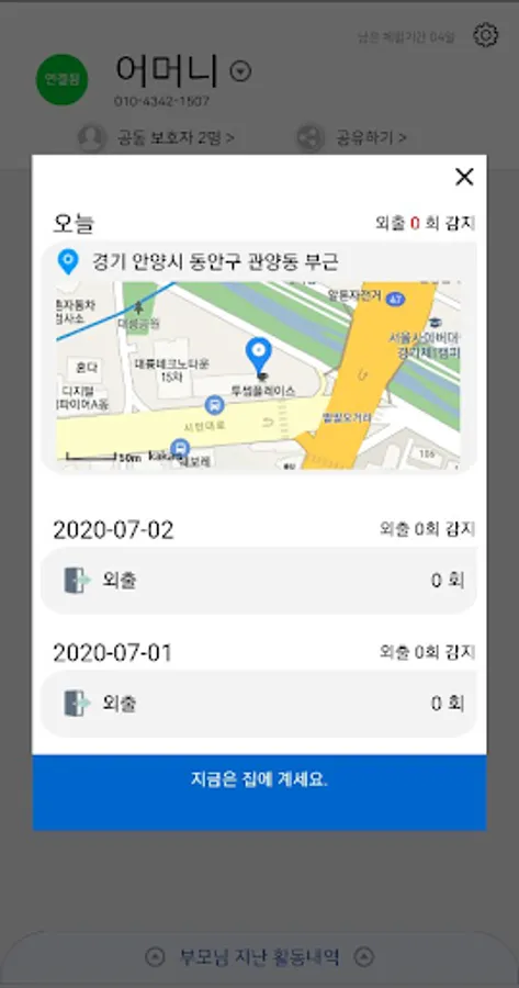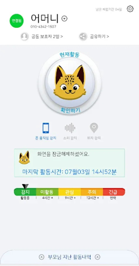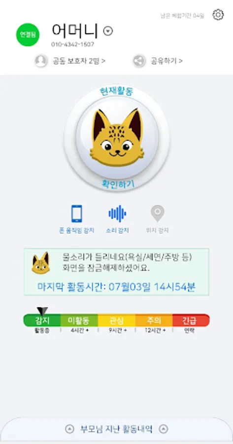 If a parent's activity is not detected, a notification is sent to the guardian's phone.