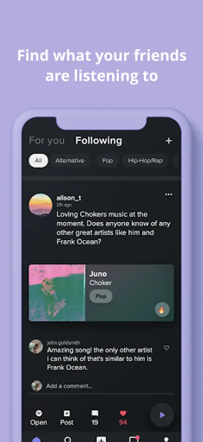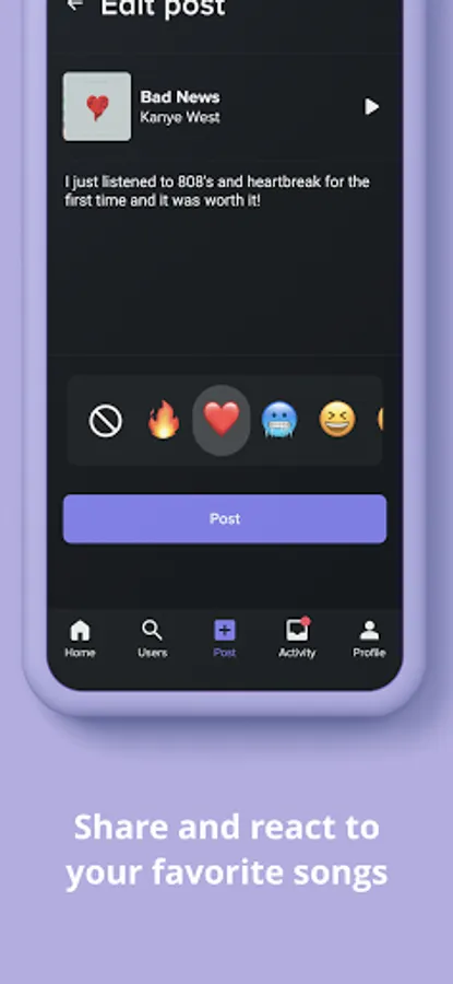 - Post your favorite songs with a caption and reaction.