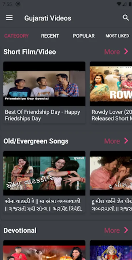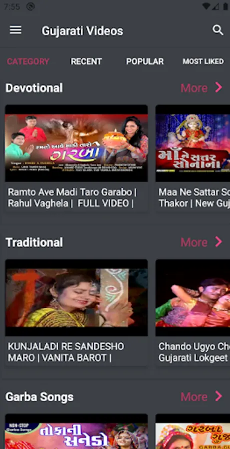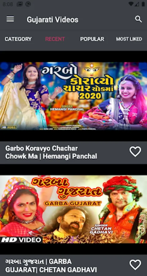 We have made different categories of Gujarati Songs and Videos so that you can easily browse what you want, the following categories are included in this app. Categories are also updated regularly.