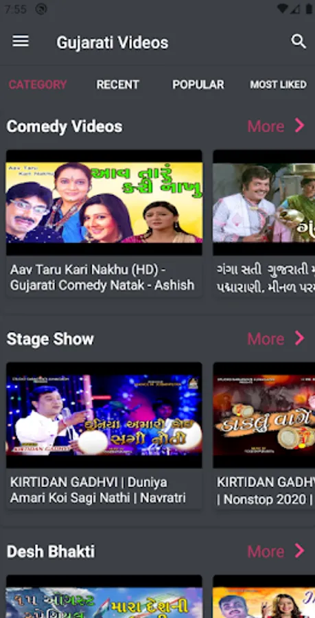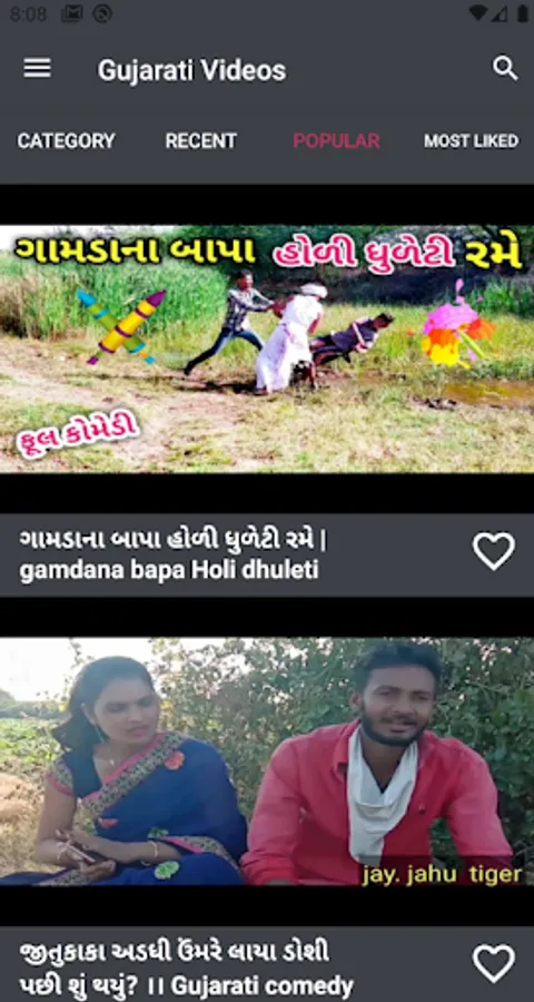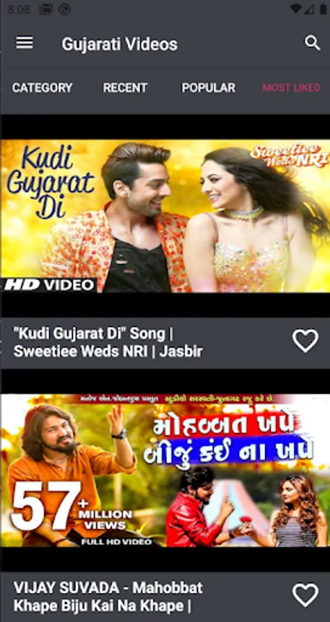 Gujarati Video app comes with huge collection on Gujarati Videos, Gujarati Songs along with Gujarati Garba, Gujarati Comedy and many other kind of video songs plus gujarati gane, vijudi etc.