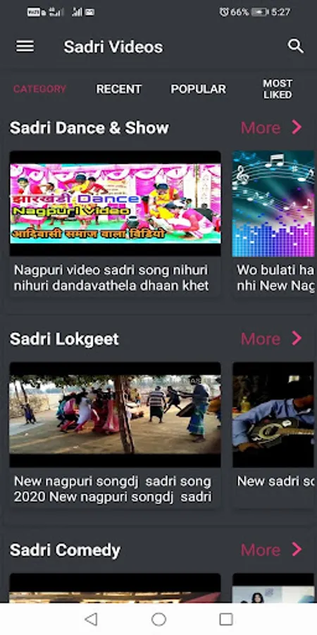 The app also has some selective collection of Nagpuri Videos including nagpuri song, album songs, DJ, comedy along with famous nagpuri lokgeet. Enjoy the traditional culture blended with moder album and movie songs.
