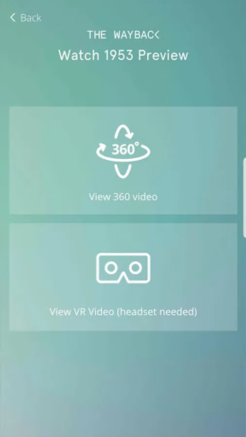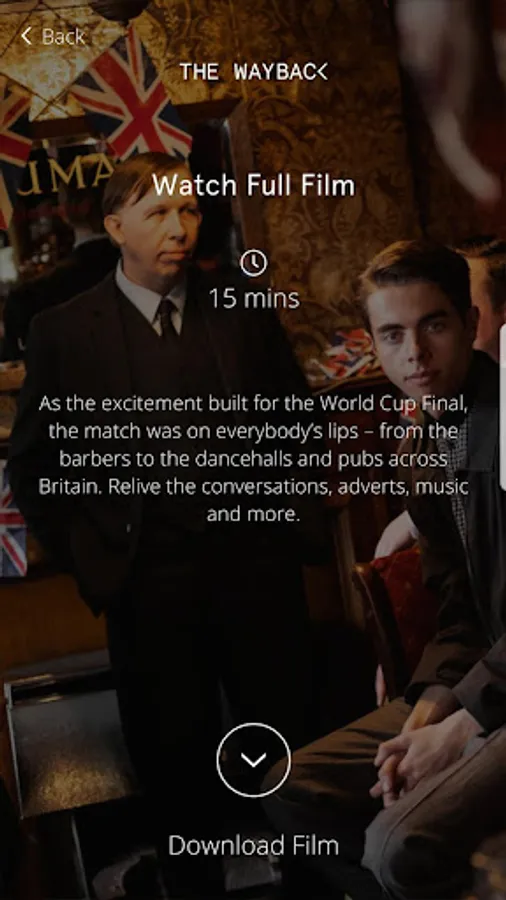 The films are optimised for use with a simple Cardboard VR viewer. For more information and to get the best out of The Wayback for your needs, please visit www.thewaybackvr.com