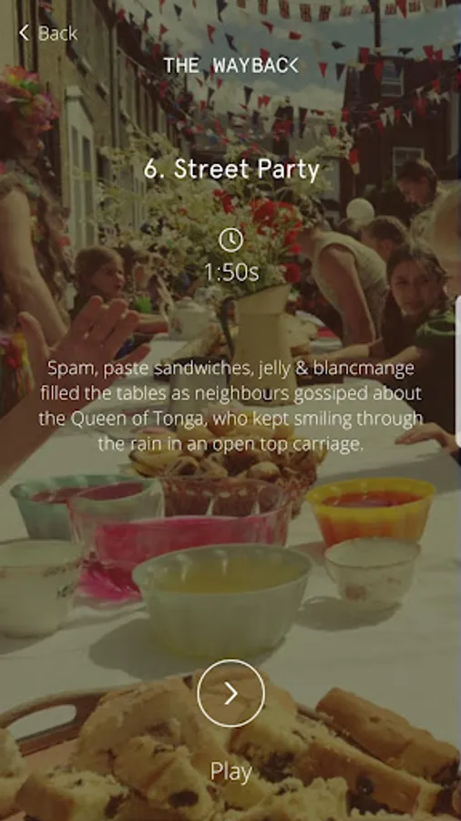 The Wayback immerses viewers in the sights and sounds of yesteryear, painstakingly recreated in 360° video. Winner of the UK Challenge Dementia prize, in association with the Alzheimer’s Society, the highly detailed films are designed specifically to trigger memories in those living with dementia and spark conversations with their carers and loved ones - but also offer moments of reminiscence for anyone who was alive at the time. Each film contains hundreds of positive memory triggers from the relevant era - from the fashion and music to the food, drink, news and conversations.