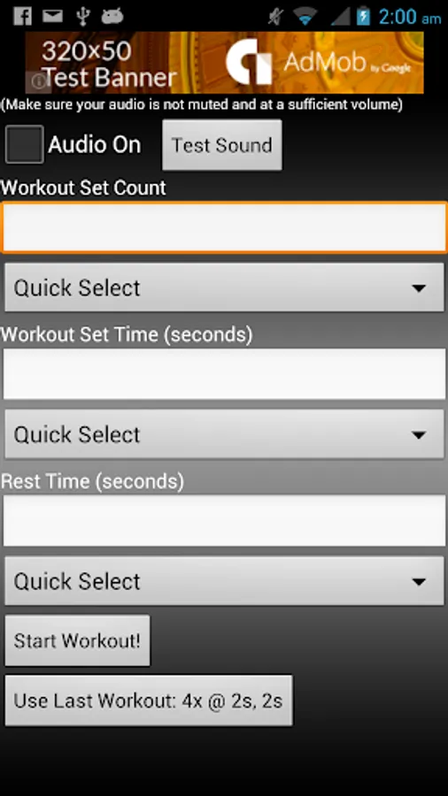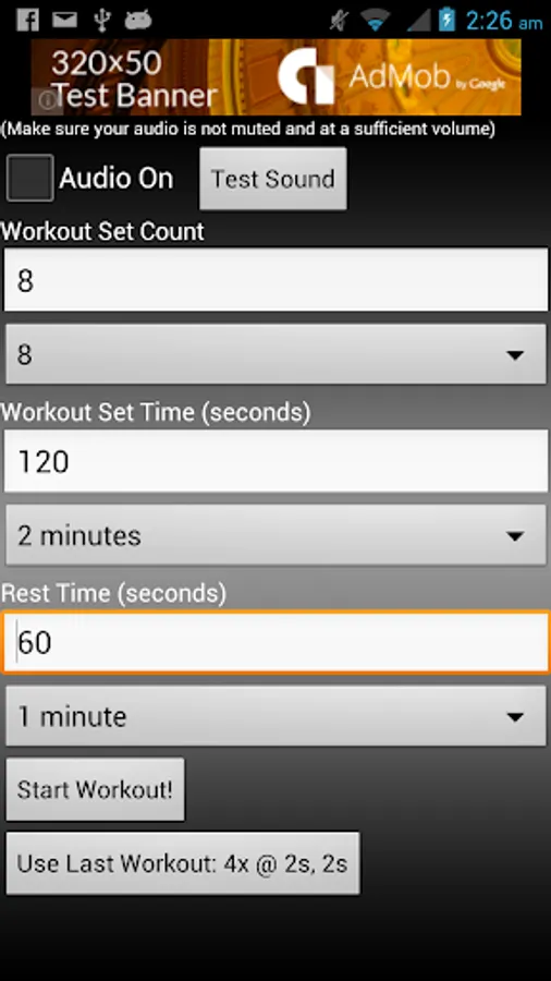 The Vocal Workout Timer allows you to easily manage your workout with an audio and/or visual cue as the timer counts down on the screen. With this app you can decide the number of workout sets with a length in seconds, and how long you want your rest periods between to be in seconds as well. I made this app so I would try to be more consistent with my weight lifting workouts. Normally I only did short workouts without taking a break, but I think this app will help me do more now. I hope you too can benefit from the effort I put into creating this. The audio is optional, so you can disable that if you prefer. Otherwise I think it is helpful, so you don't have to keep watching your phone's screen as you workout. Each screen includes a simple help text. The last workout setting is saved, so you can easily re-select that at a future time.