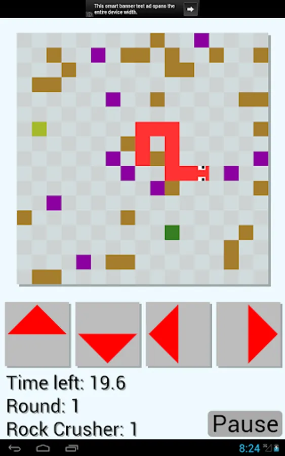 This is a game where you control a little grid worm that loves to eat green blocks. Once you get all of the green blocks you will win the round, but you need to get all of them before the timer counts down to zero! Difficulty slowly increases, although there are a few ways to get help such as a few seconds added to the timer for every dark green block you get and a little bit of time added per round played. The game board is generated randomly and slowly increases in difficulty by giving a higher percentage to each game item type that's needed to win the round.