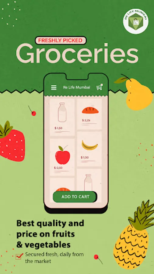 Re Life Mumbai is your everyday online vegetable and grocery shopping app that home-delivers 1000+ daily vegetables and groceries in just a munite. Buy Fresh Vegetables, Fresh Fruits and daily grocery, kitchen, home or office items by shopping for them online on Re Life Mumbai App. Enjoy easy and smooth app experience with quick delivery. ⏰