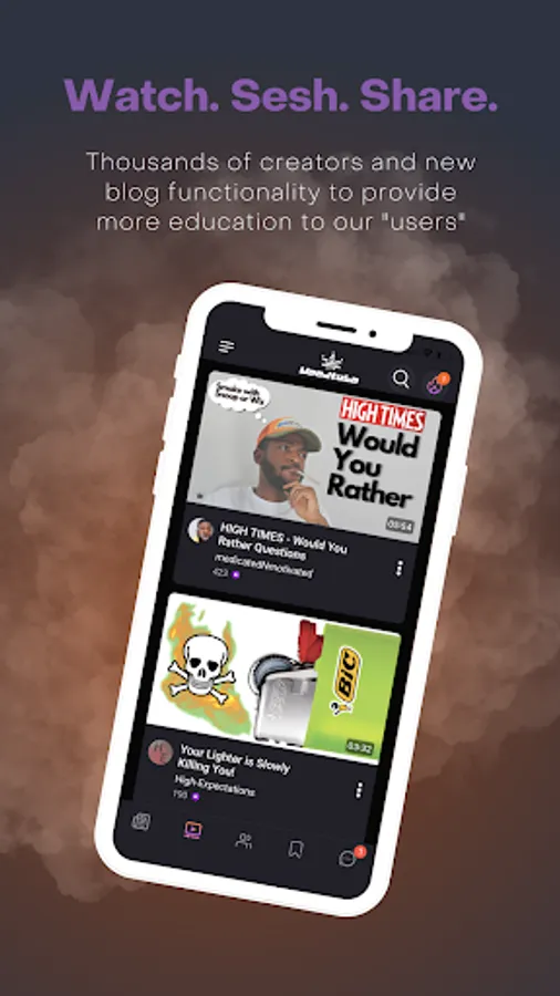 With the easy to use interface, you can spend hours scrolling through videos and posts from your friends and favorite people from the cannabis industry. Categories to satiate any entertainment appetite. The hottest app with the most information about weed or anything in the cannabis industry. Join the conversation with comments and interact with creators and other community members.