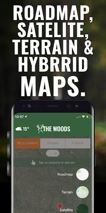 The Woods hunting app is designed for the modern social hunter who wants to use mapping, record info and fully extend the hunting camp experience virtually with friends all year!