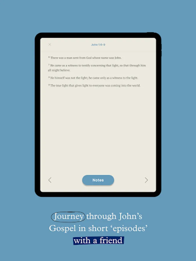 The Bible text is presented verse-by-verse in short ‘episodes’, so you can enjoy reading at your own pace with a friend