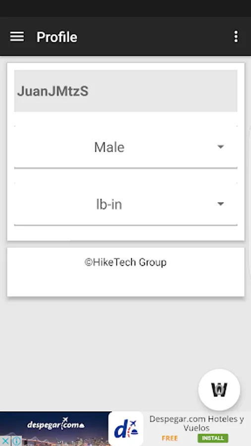 Here you only need to register your name and sex, using that information and the provided in the fit-test section we will estimate your body fat % every time you record your progress in a fit-test, moreover you can choose between pounds/inches and kg/cm as you prefer.
