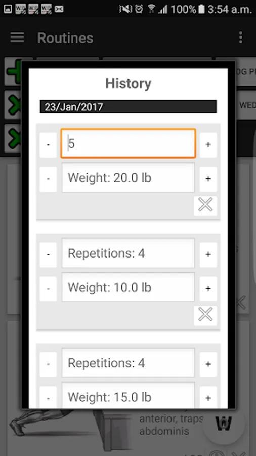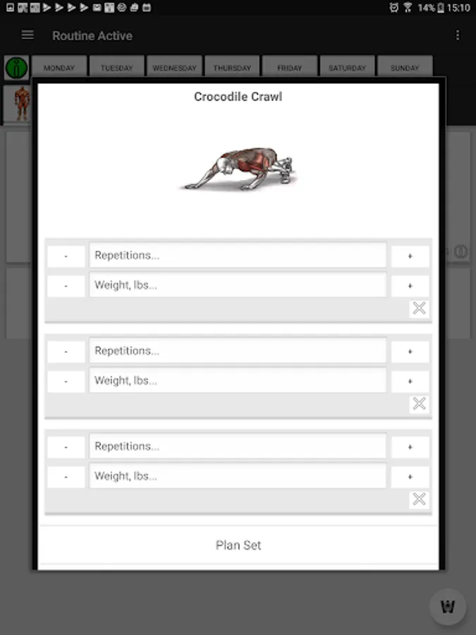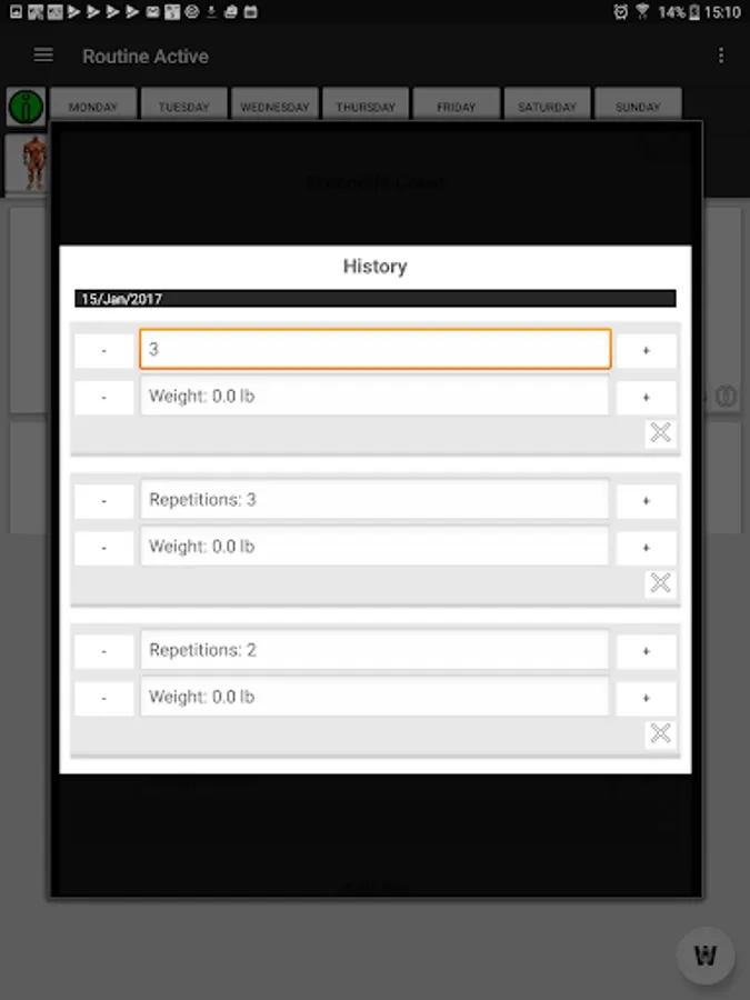 Here you have a great and easy routine manager were we give you 2 free routines(WOG and Full Body for Beginners), moreover you can create, edit and delete your own routines adding all the exercises you want from the exercises section or delete them whenever you want. Finally the best, you can choose and activate whichever routine you want to train weekly.