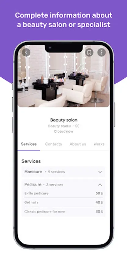 Check out beauty salons and specialists in your area, compare their services and prices, choose the ones you like the most, and book an appointment online in just a few quick and easy steps.