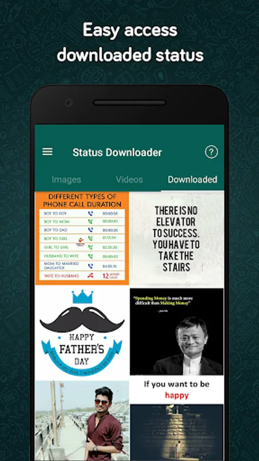 Easily downloads WhatsApp Status Videos with the help of status saver app.