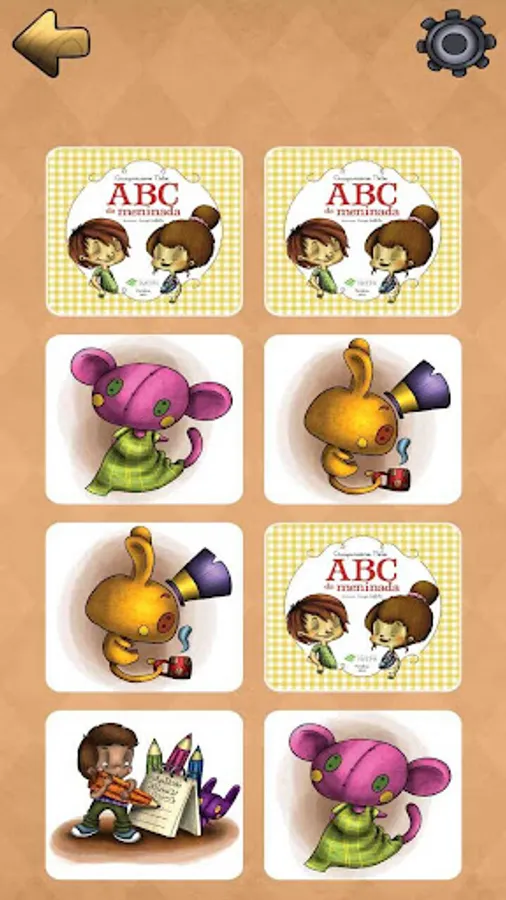 The content of the book "ABC da Meninada" by Editora Imeph was gamified in order to expand it to the digital world in a playful way, from 3 classic games, namely, puzzle, memory game and shape fitting game . Each game contains 130 phases, divided into 26 groups (one group for each letter of the alphabet), each group containing 5 phases of the respective game, totaling 390 phases