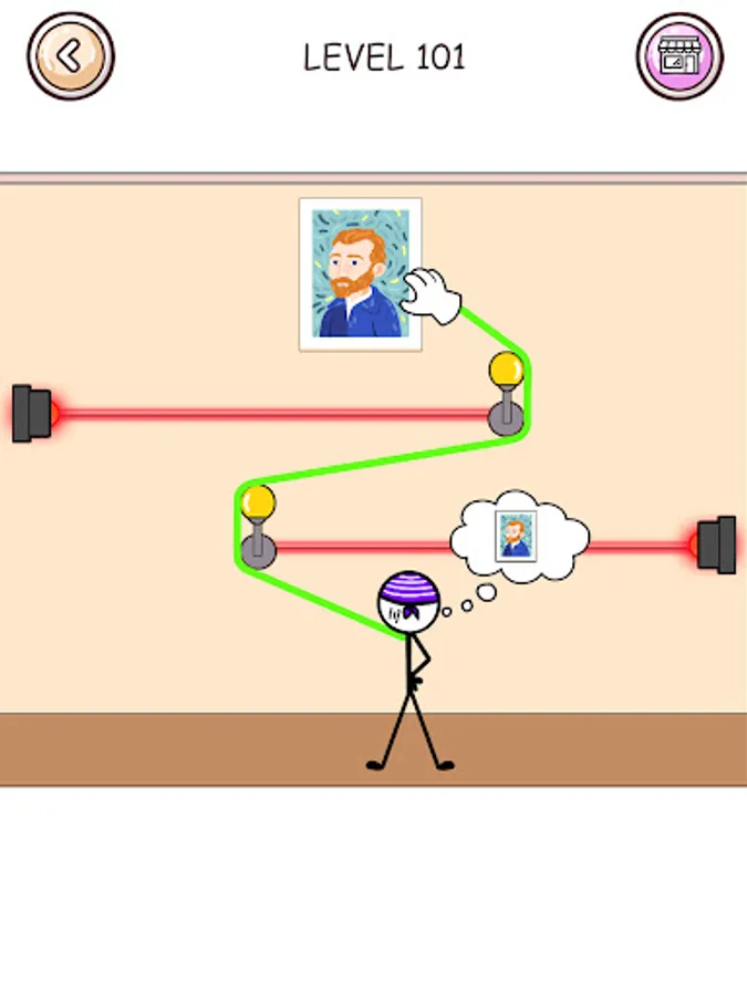 The Thief Brain puzzle game is a fun, addictive, and relaxing game for fans of thief brain games. In this game, you must find a way to solve the stickman thief puzzle level by level, steal the treasure and escape, similar to other escape games. It's a test of your IQ in this easy puzzle game – a thief puzzle game is very simple. It's not as difficult as other stickman puzzle games and brain test games.Thief Puzzle To pass a level with the help of robbery games and brain games skills.