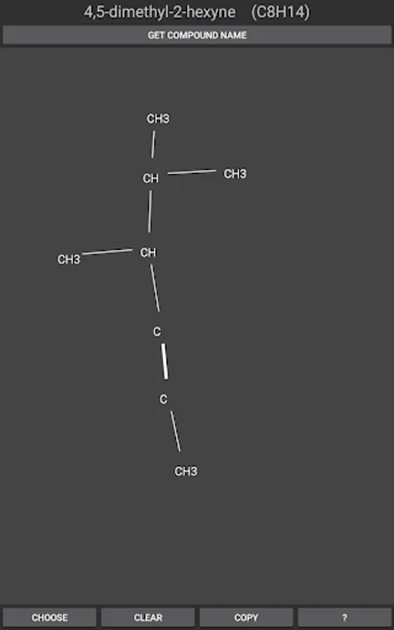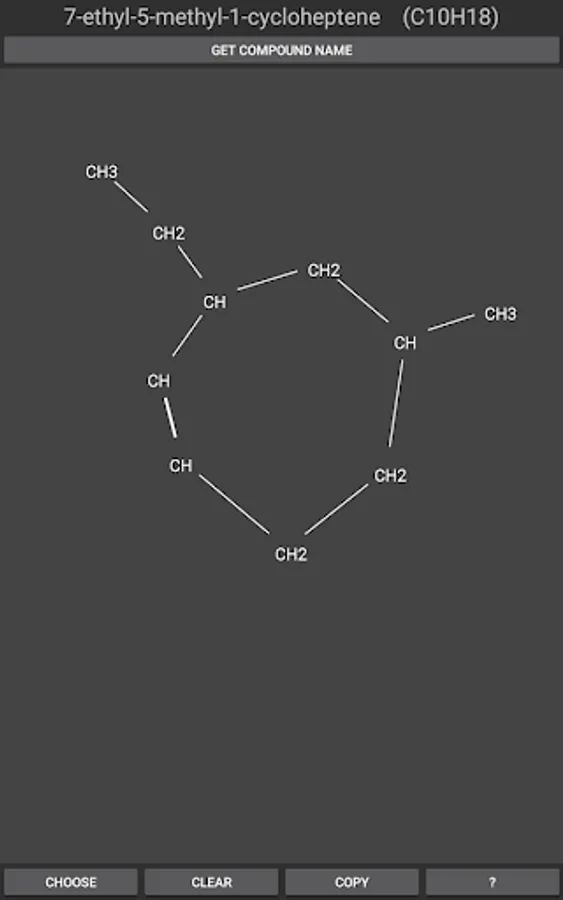 Draw an organic compound/molecule and this app will give you it's name according to the IUPAC nomenclature conventions.