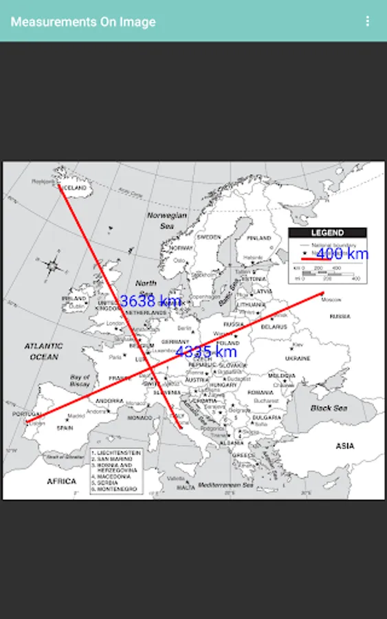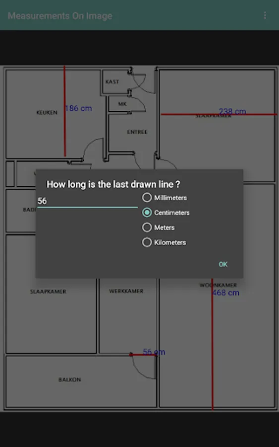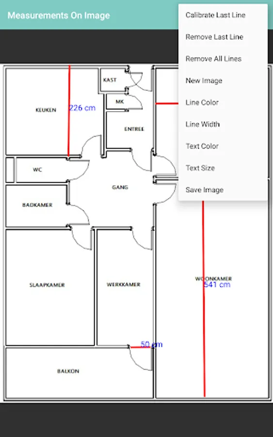 This app enables you to measure various distances on an image provided at least one distance is known. Simply calibrate the app with a/the known distance and all other distances will be calculated automatically.