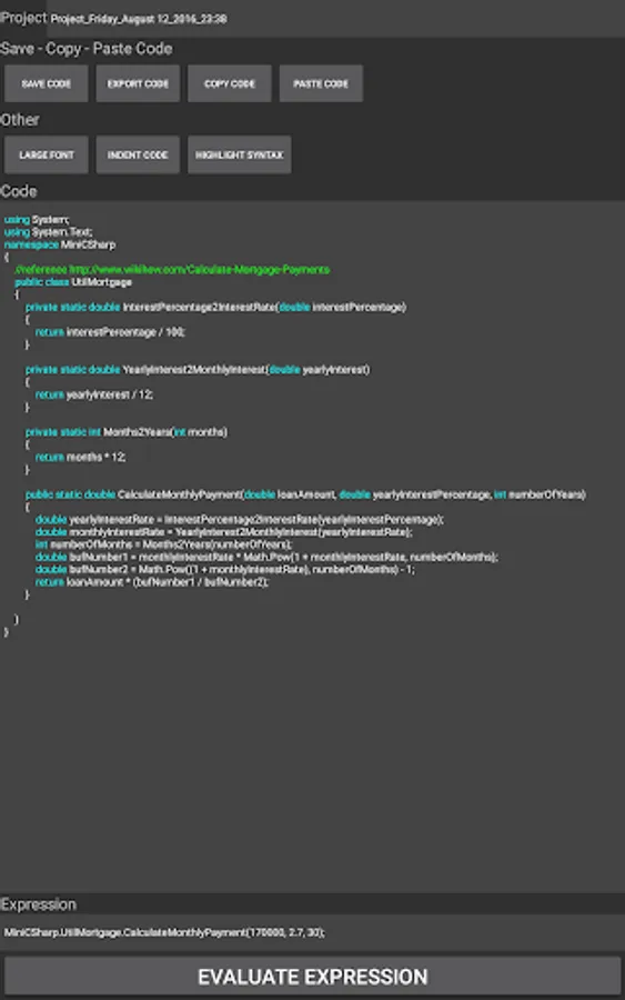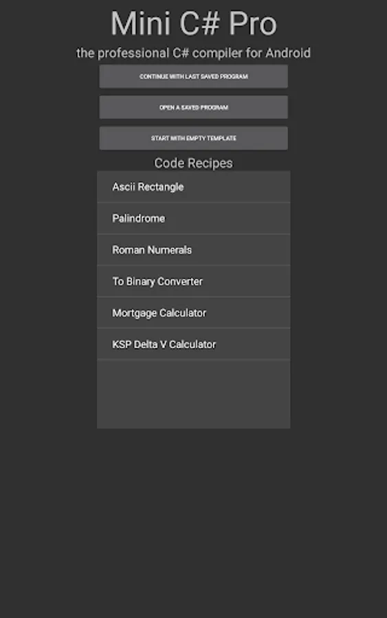 With "Mini C# Pro" you can write and compile C# code on your Android device.