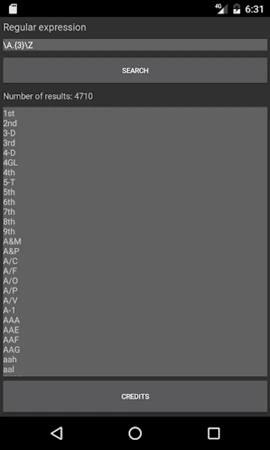 The ultimate tool to find words for word-games and/or other goals. Type a regular expression and all matching words will be found. Works off-line with a database containing almost half a million words.
