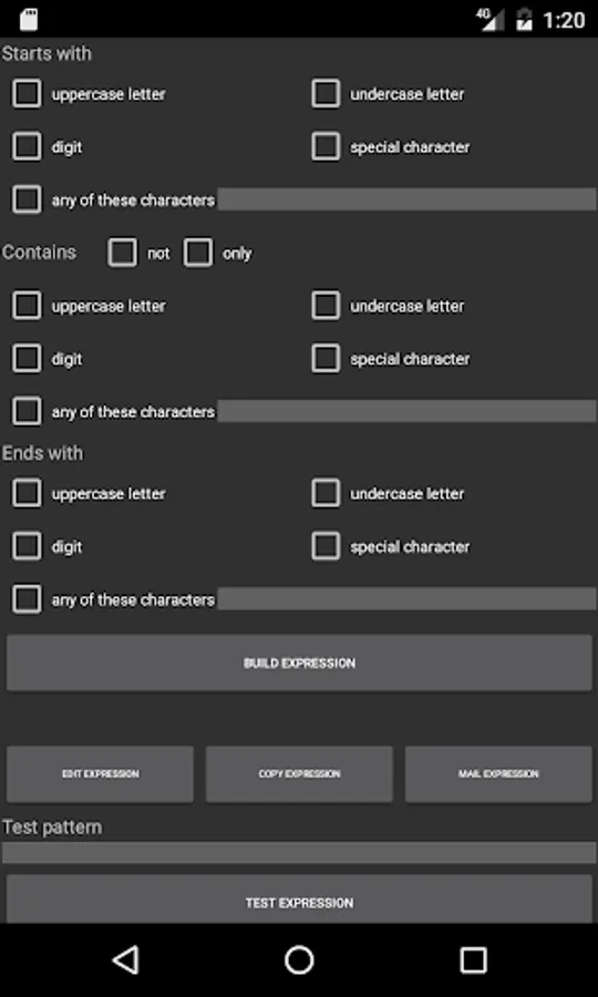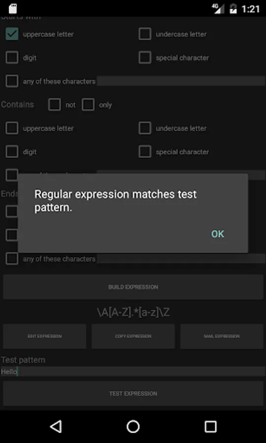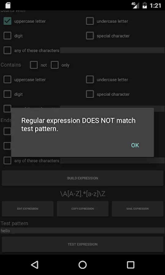 Need a regular expression ? Use this app to construct one by choosing from a set of options.