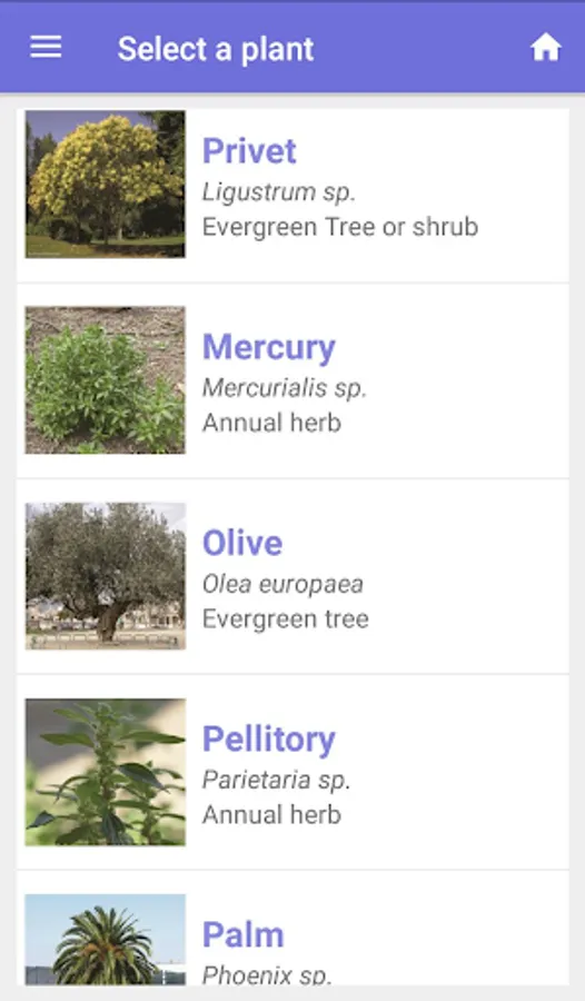Planttes has selected 11 species for their allergenic potential and presents their main botanical characteristics and phenological phases in a files and a pictures gallery.