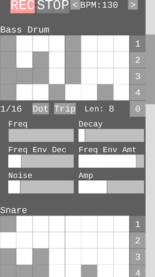 Freq Env Dec: Frequency envelope decay. Changes how fast the pitch drops