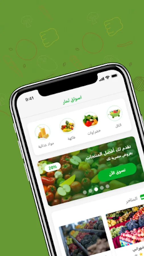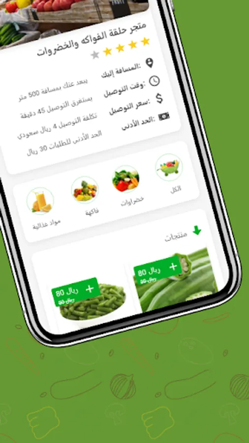 The application of the fruits market helps you in knowing the fresh products of vegetables and fruits available in the stores around you. You can also order what you need with ease through the application and delivery is done very quickly within 30 minutes