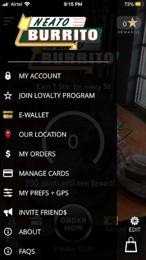 The Neato Burrito App will allow you to easily create your burrito(s), checkout, pay and earn loyalty and rewards! Plus, the App helps you stay 100% contactless, as well as get live order update push notifications when your order is being made and ready for pickup!