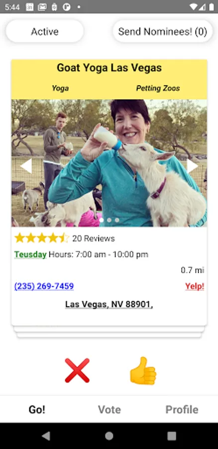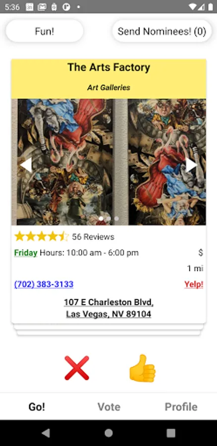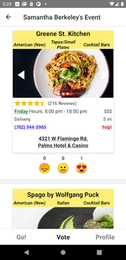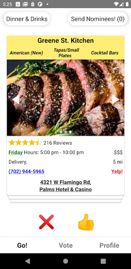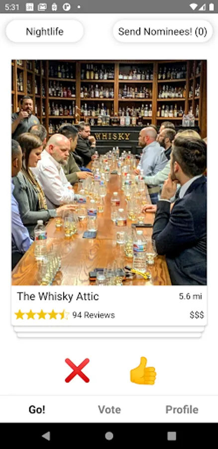 Discover restaurants, bars, activities and more in your area! Swipe to nominate places, invite your friends, and vote on your next outing.