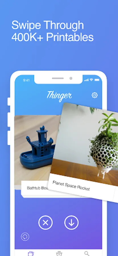 With Thinger, browsing and downloading 3D models for your 3D printer has never been easier. The app's intuitive interface makes it simple to swipe through thousands of free, downloadable models and find the perfect one for your next 3D printing project. Whether you're an experienced 3D printer or just starting out, you'll find the process of discovering and downloading new models to be a breeze. The app's fast and responsive design ensures that you can quickly find what you're looking for and start printing right away. So if you're looking for a simple and convenient way to find new 3D printing models, be sure to check out Thinger today!