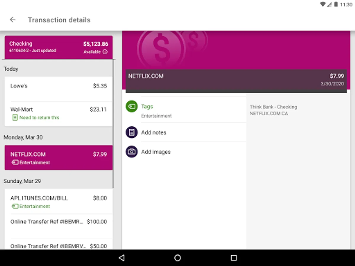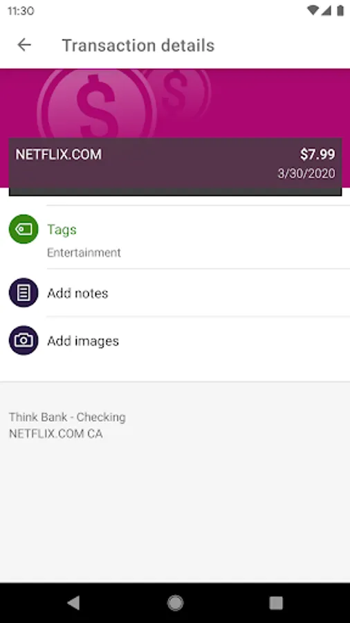 Keep your transactions organized by allowing you to add tags, notes and photos of receipts and checks.