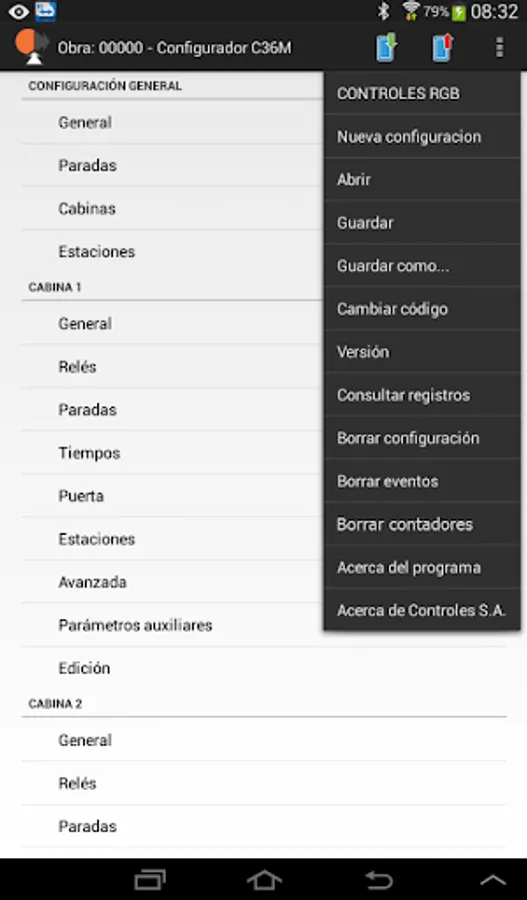 CEA36 Configuration App form CONTROLES S.A. URUGUAY