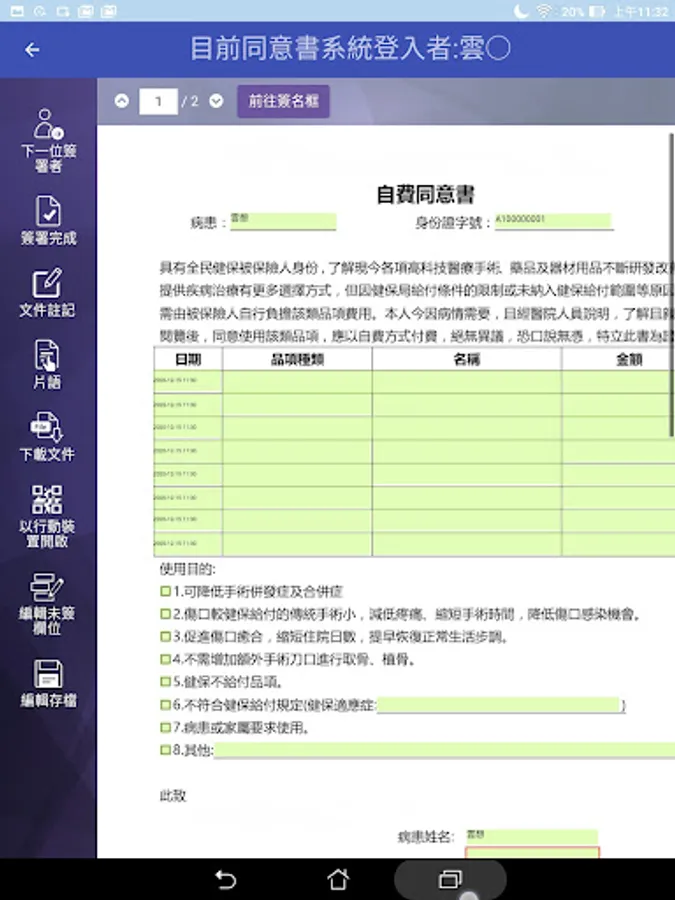 1. Log in according to the personal information in the hospital, and you can read and sign the personal consent form.
