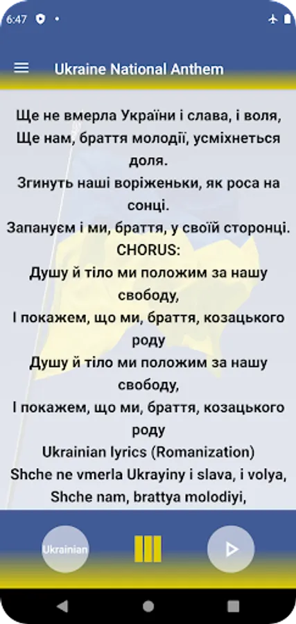 The best app to listen and learn Ukraine National Anthem.