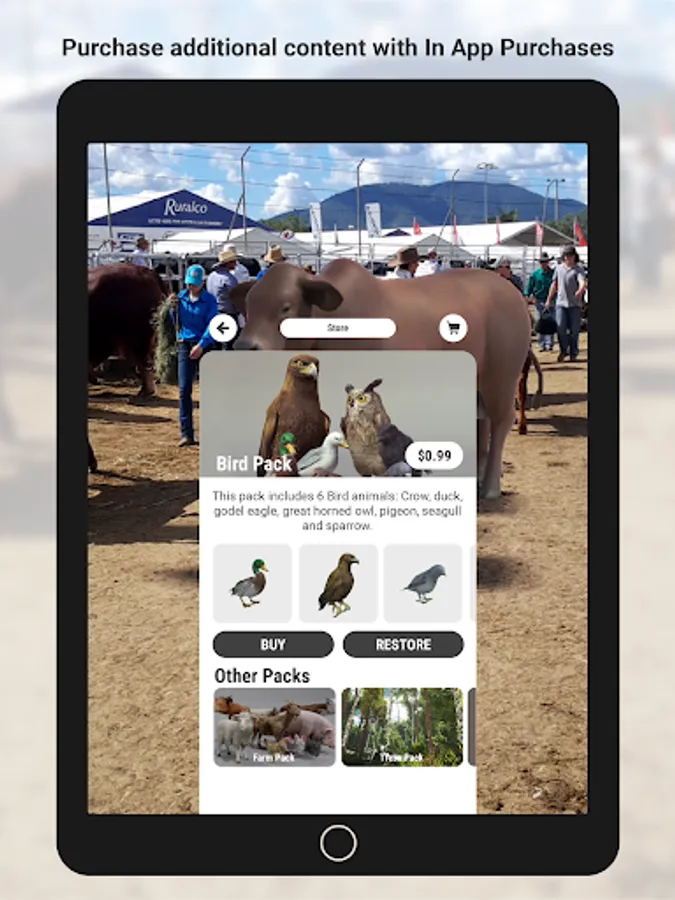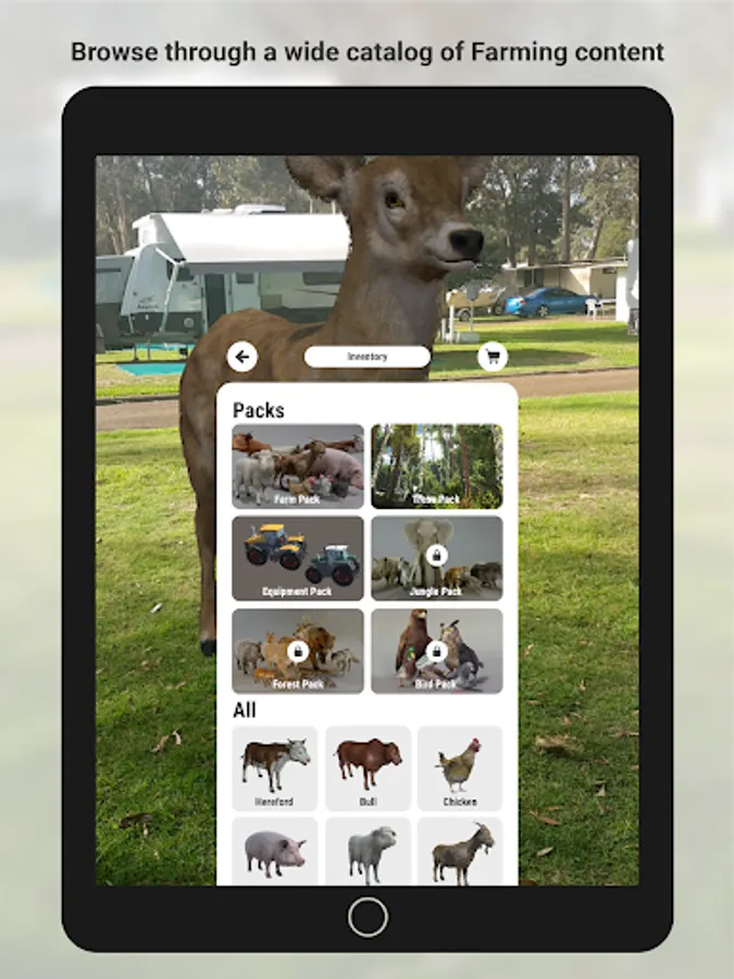 FarmAR uses your phoneβs camera to scan the environment, allowing you to place animals in the world around you and interact with them! Dive into our collection of agricultural 3D models such as animals, machinery, farm maps and more.