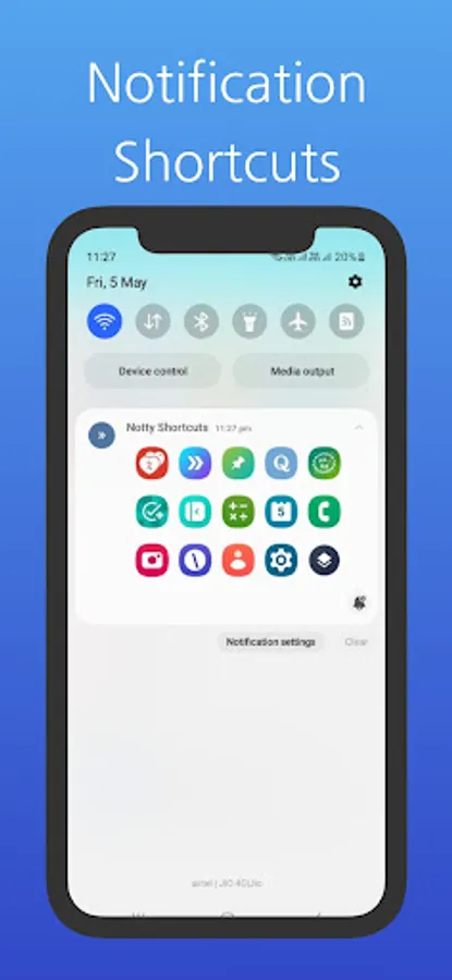 Add apps to notification shortcuts, remove apps from notification shortcuts.