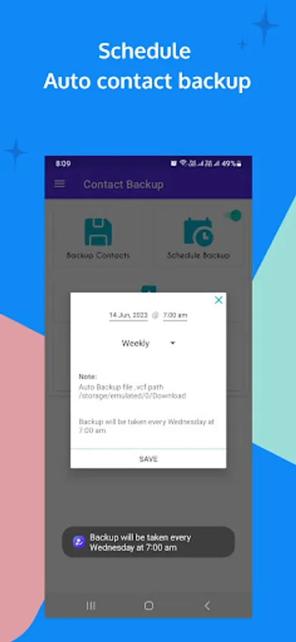 Contact Backup will automate backup process by taking backup of your all contacts on schedule time interval without disturbing you.