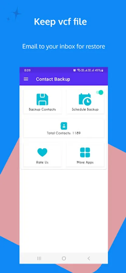 Auto Backup all of your contacts in an easy & convenient way. The backup file .vcf is compatible with all smart phones.